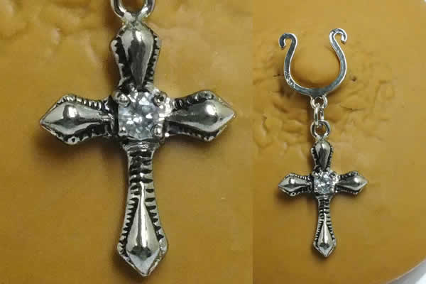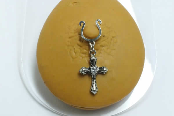ジュエルをセットした十字架のチャームがゆれるクロスニップルクリップ。