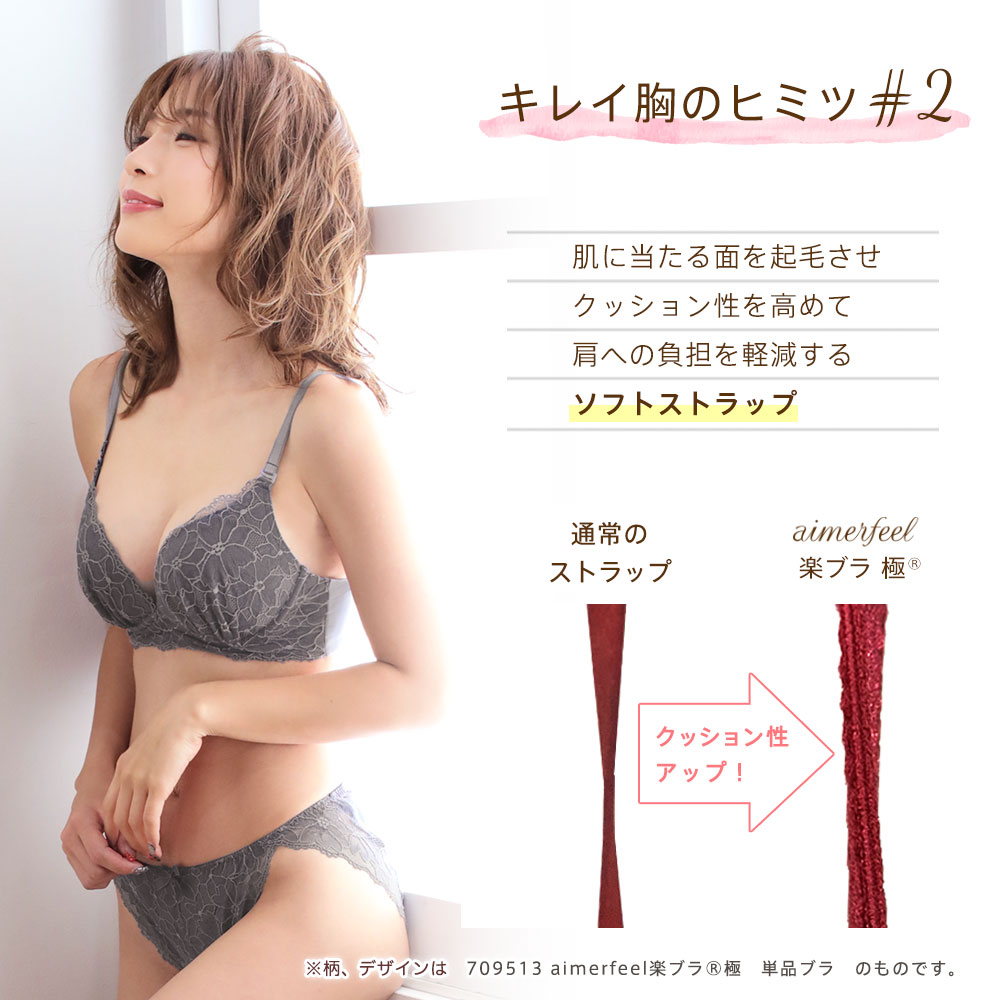 ブラジャーストレスフリー aimerfeel楽ブラ(R) 極 単品ブラジャー (レディース 下着 女性 痛くない しんどくない 楽 楽ちん 締め付けない 柔らかい ワイヤー レース 大人可愛い 谷間 らくちん ラクチン かわいい 下着)